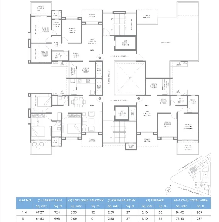(Super Builtup Area) : 695 – 817 sq.ft