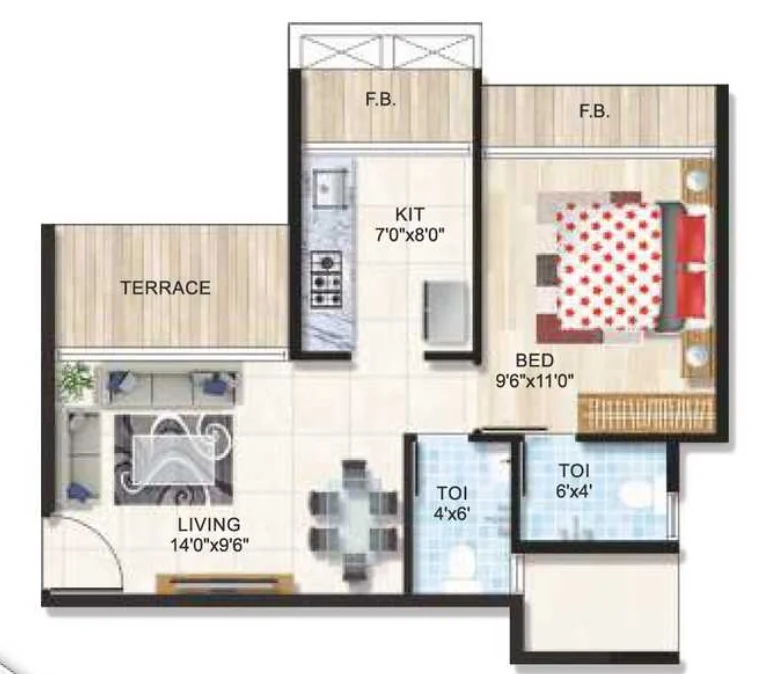 (Super Builtup Area) : 412 – 483 sq.ft