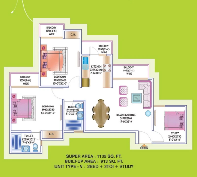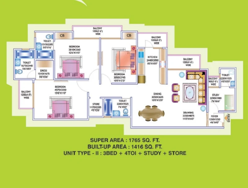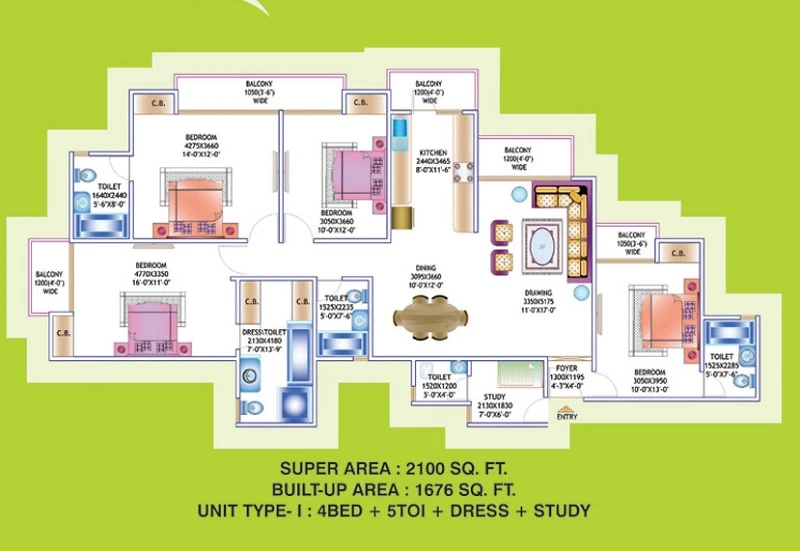 (Super Builtup Area) : 1385 – 2100 sq.ft