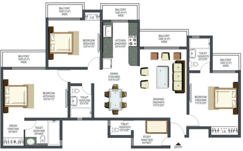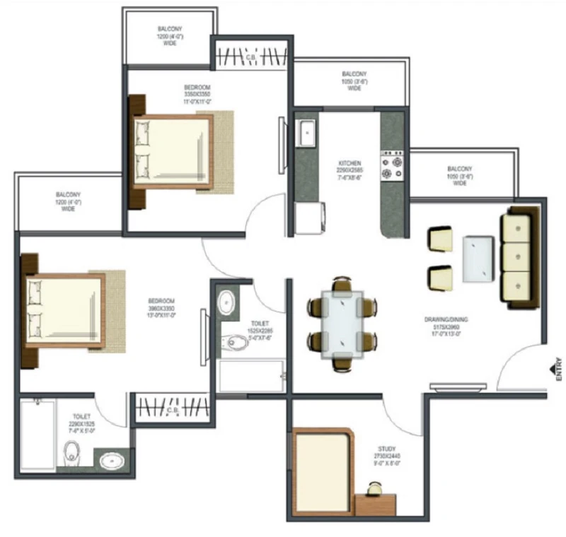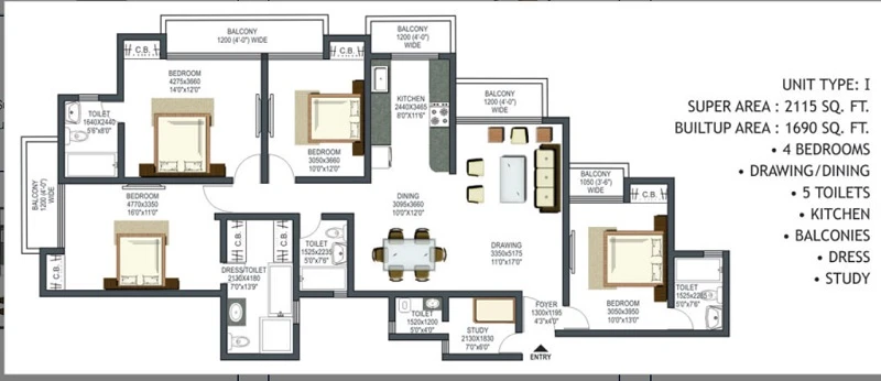 (Super Builtup Area) : 955 – 2115 sq.ft
