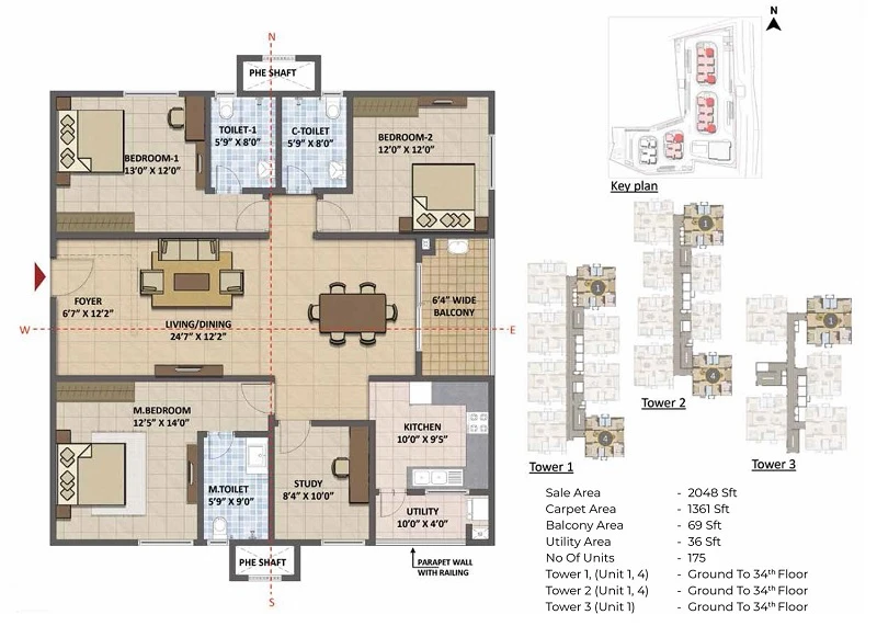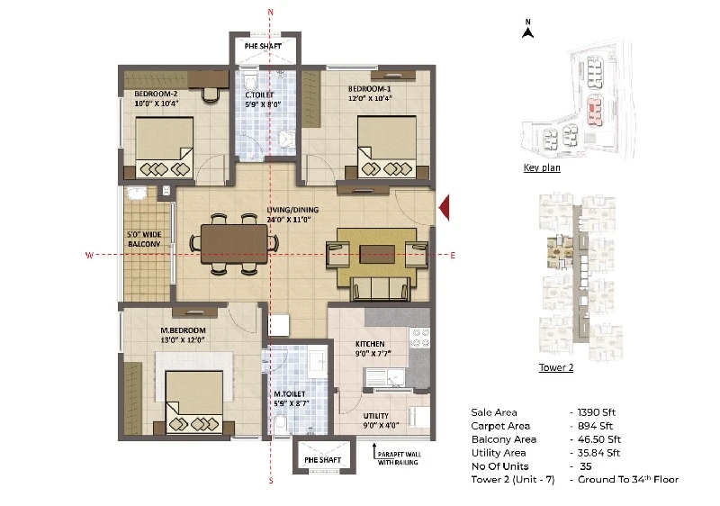 (Super Builtup Area) : 1390 – 2049 sq.ft
