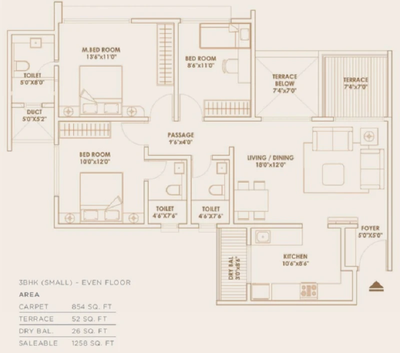 (Super Builtup Area) : 780 – 2621 sq.ft