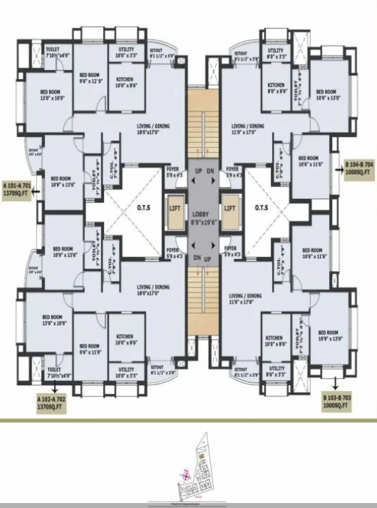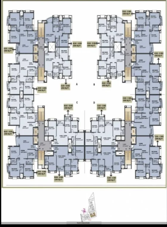 (Super Builtup Area) : 1000 – 1500 sq.ft