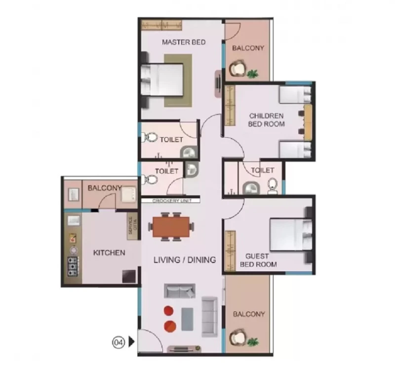 (Super Builtup Area) : 1073 – 1606 sq.ft