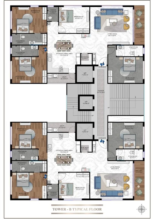 Rajhans Eronzza Residential project in Surat offering Apartments for Sale in Bharthana. The property offers 3&4BHK Apartments meticulously planned that guarantee a hassle-free lifestyle. As per the area plan it has 190 units in the size range 1754 sq.ft. – 3465 sq.ft. Possession date is June 2027. Rajhans Eronzza offers prices suitable for both luxurious and affordable Apartments in Surat. Rajhans Eronzza is located Bharthana. This is considered as best Apartments for Sale in Surat and best Apartments for Sale in Bharthana.