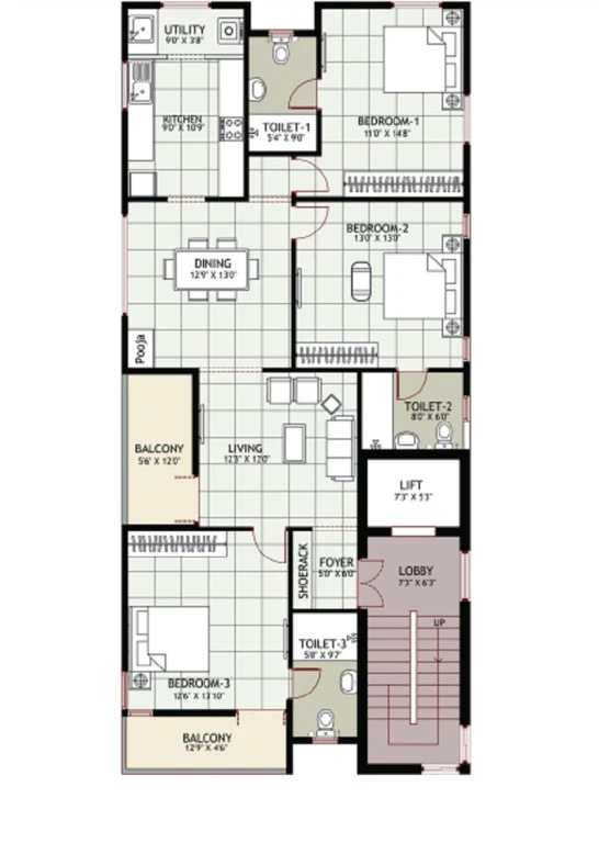 (Super Builtup Area) : 1776 – 1776 sq.ft