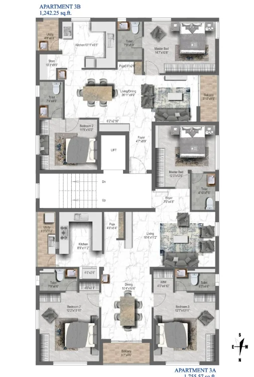 (Super Builtup Area) : 800 – 3054 sq.ft