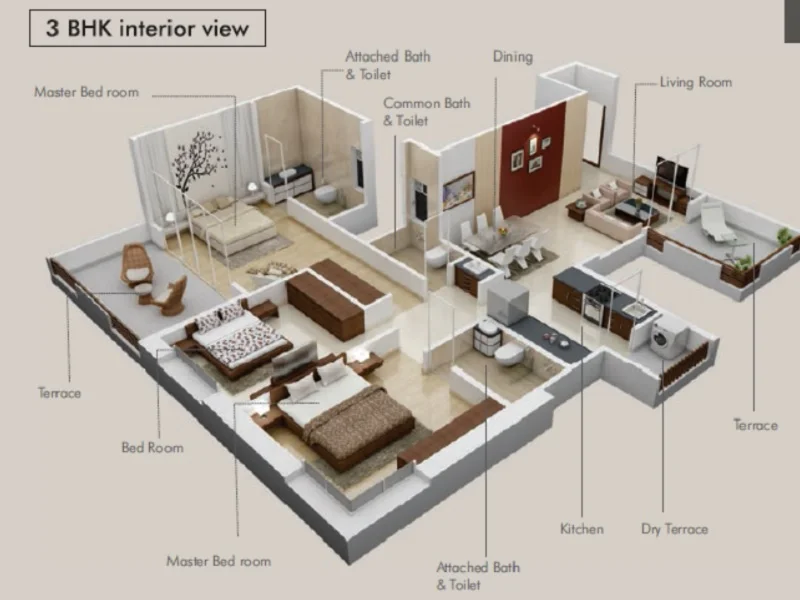 (Super Builtup Area) : 384 – 1029 sq.ft