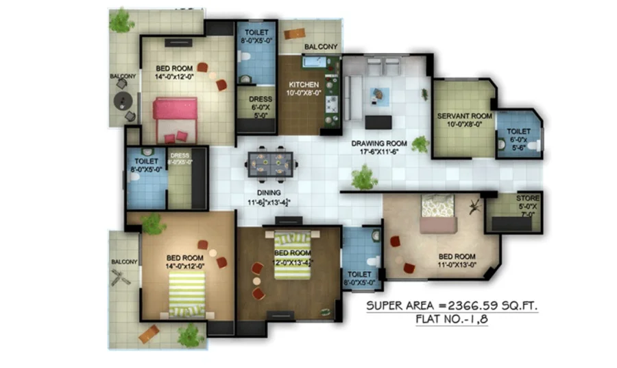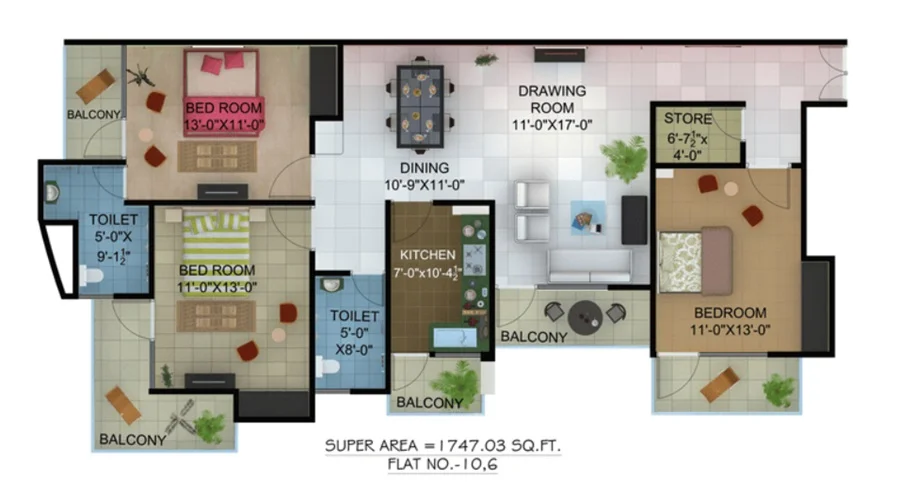 (Super Builtup Area) : 1024 – 2450 sq.ft