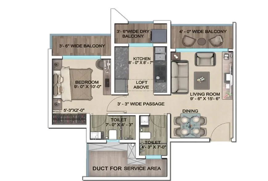Super Builtup Area : 431 – 636 sq.ft
