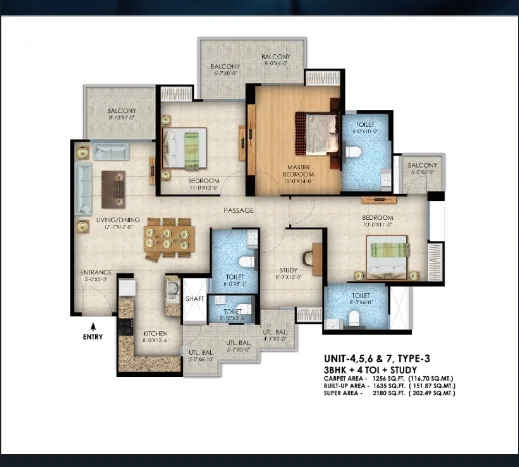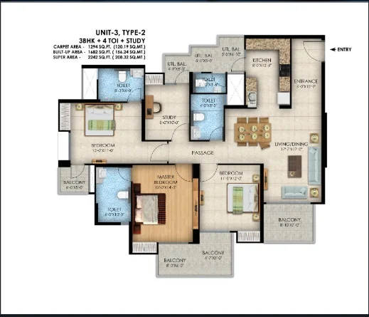 (Super Builtup Area) : 1218 – 1629 sq.ft