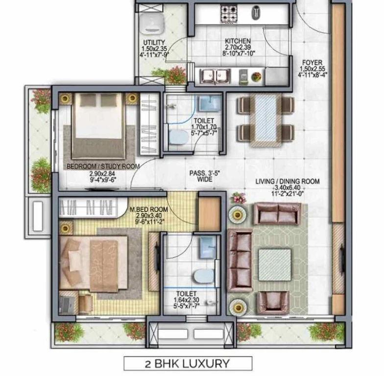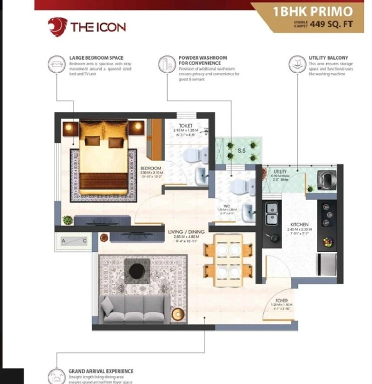Super Builtup Area : 429 – 636 sq.ft