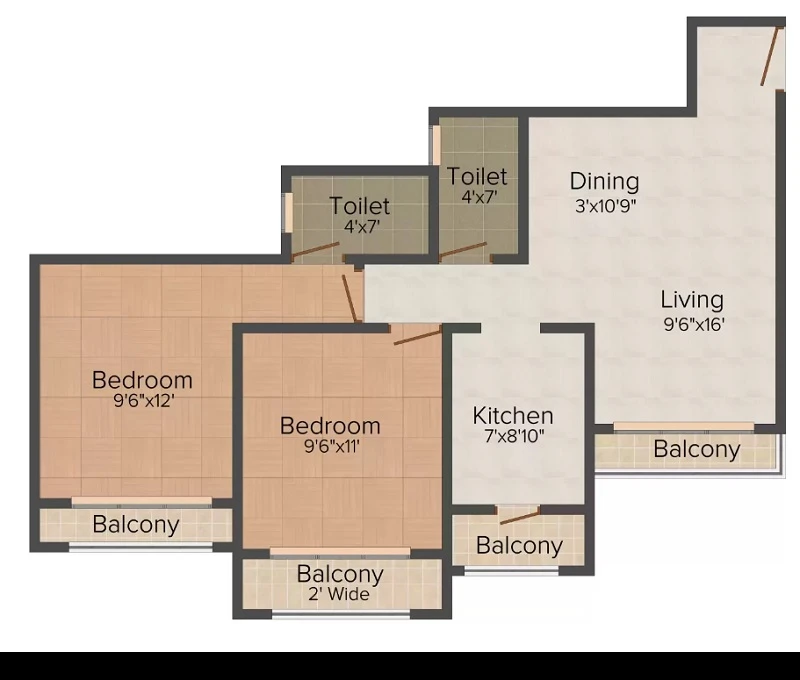 (Super Builtup Area) : 665 – 1212 sq.ft