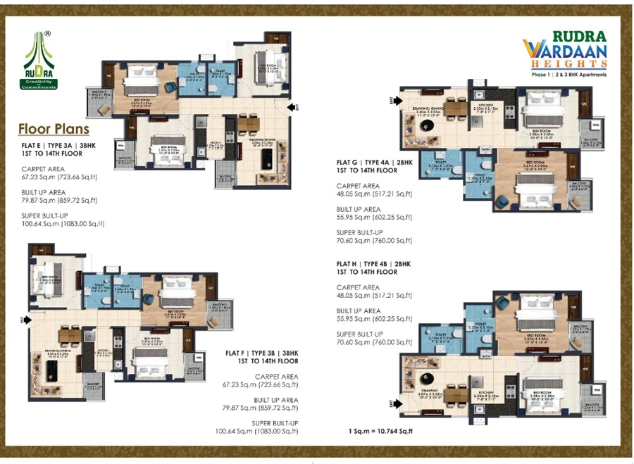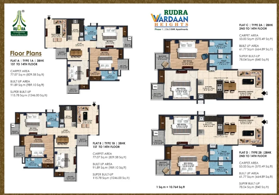 Sizes : 760 – 1246 sq.ft.
