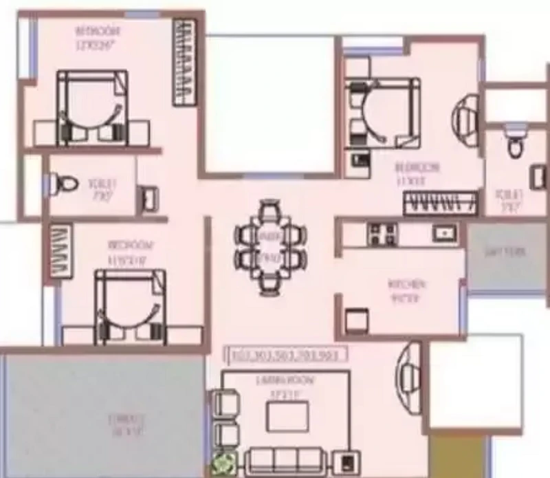 (Super Builtup Area) : 706 – 1300 sq.ft