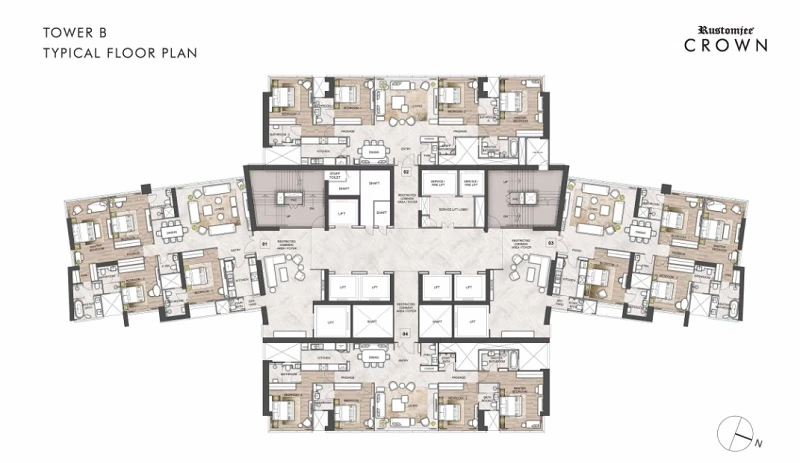 In terms of facilities, Rustomjee Crown Phase 2 is loaded with multiple offerings such as Gymnasium, Power Backup. For families with kids, there is Children Play Area. It is a Gated Community. Immerse yourself in a world of sports with provisions for Tennis Court, Basketball court, Badminton Court, Cycling. Residents can make use of Restaurants/Cafeterias, Internet / Wi-Fi, provisions in the project. There is 24×7 Security. It is one of the most admired properties for sale in Mumbai and admired properties for sale in Prabhadevi.