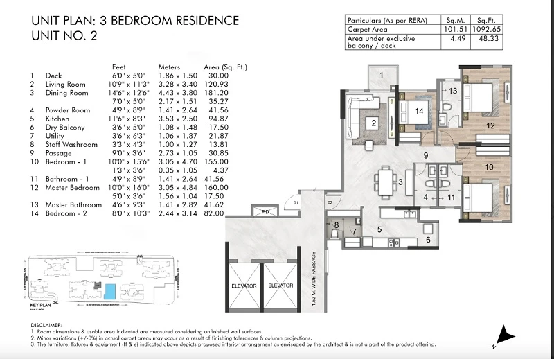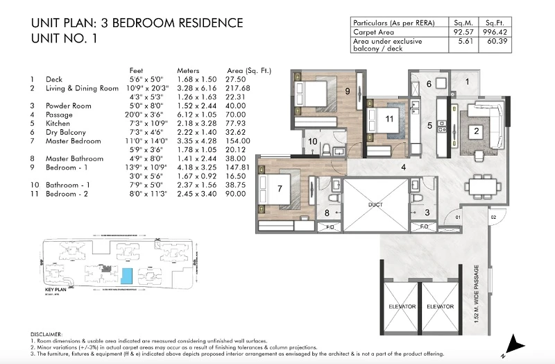 (Super Builtup Area) : 945 – 1096 sq.ft