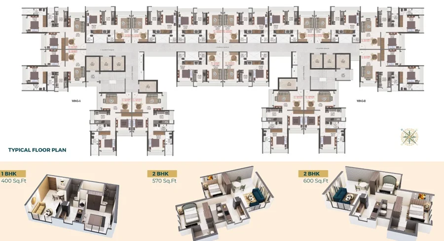 (Super Builtup Area) : 400 – 600 sq.ft