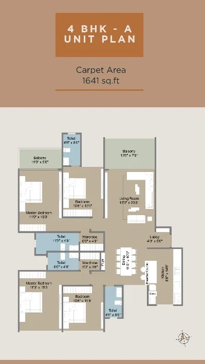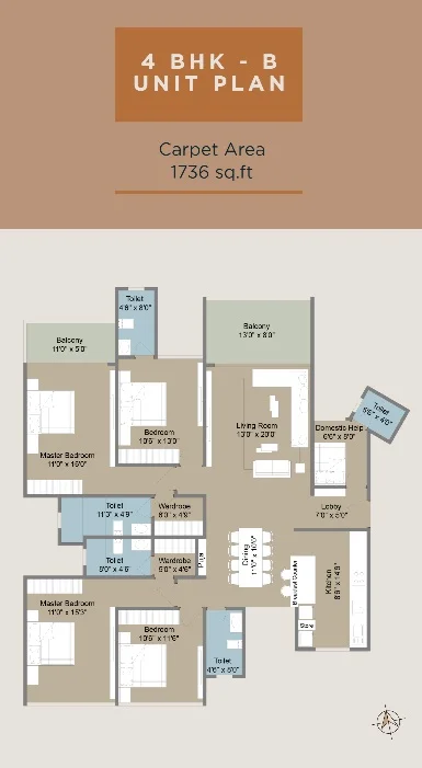 (Super Builtup Area) : 1199 – 1736 sq.ft