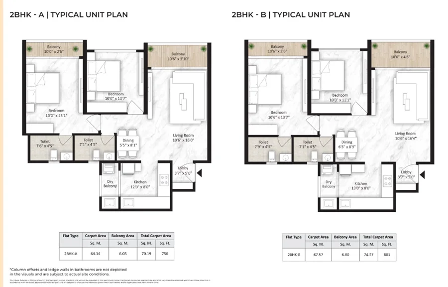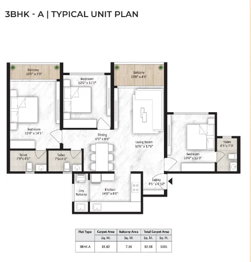 (Super Builtup Area) : 756 – 1001 sq.ft
