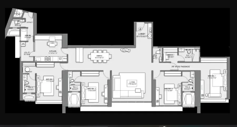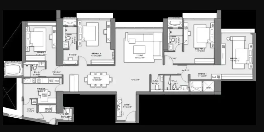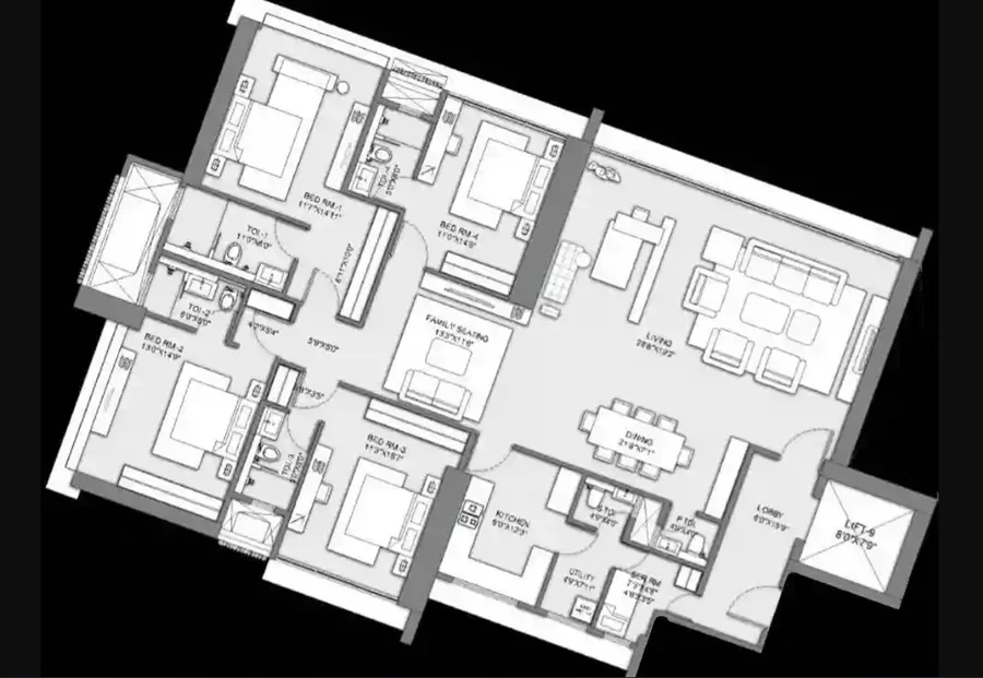 (Super Builtup Area) : 742 – 1733 sq.ft