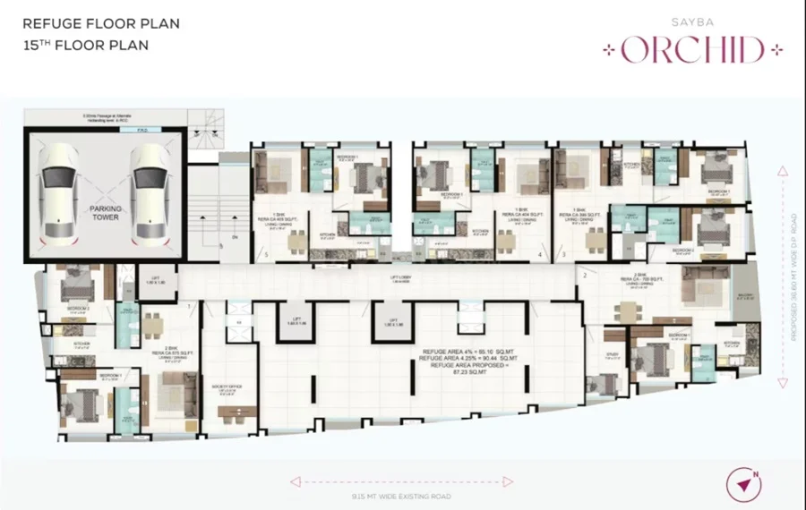 The floor plan of Sayba Orchid enables the best utilization of the space with spacious balconies, standard kitchen size and high-quality fixtures. Location advantage of Sayba Orchid is its proximity to Reputed Schools and Colleges. Unmatched connectivity from all the important landmarks and places. Easy access to everyday utility such as hospitals, schools, supermarts, parks, regional centers etc.