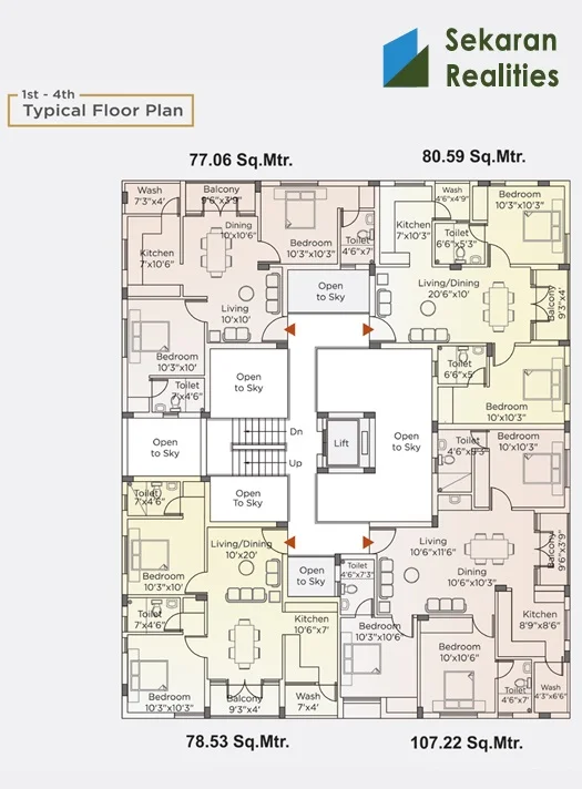 The floor plan of Sekaran Brighton enables the best utilization of the space with spacious balconies, standard kitchen size and high-quality fixtures. Location advantage of Sekaran Brighton is its proximity to Reputed Schools and Colleges. Unmatched connectivity from all the important landmarks and places. Easy access to everyday utility such as hospitals, schools, supermarts, parks, regional centers etc.
