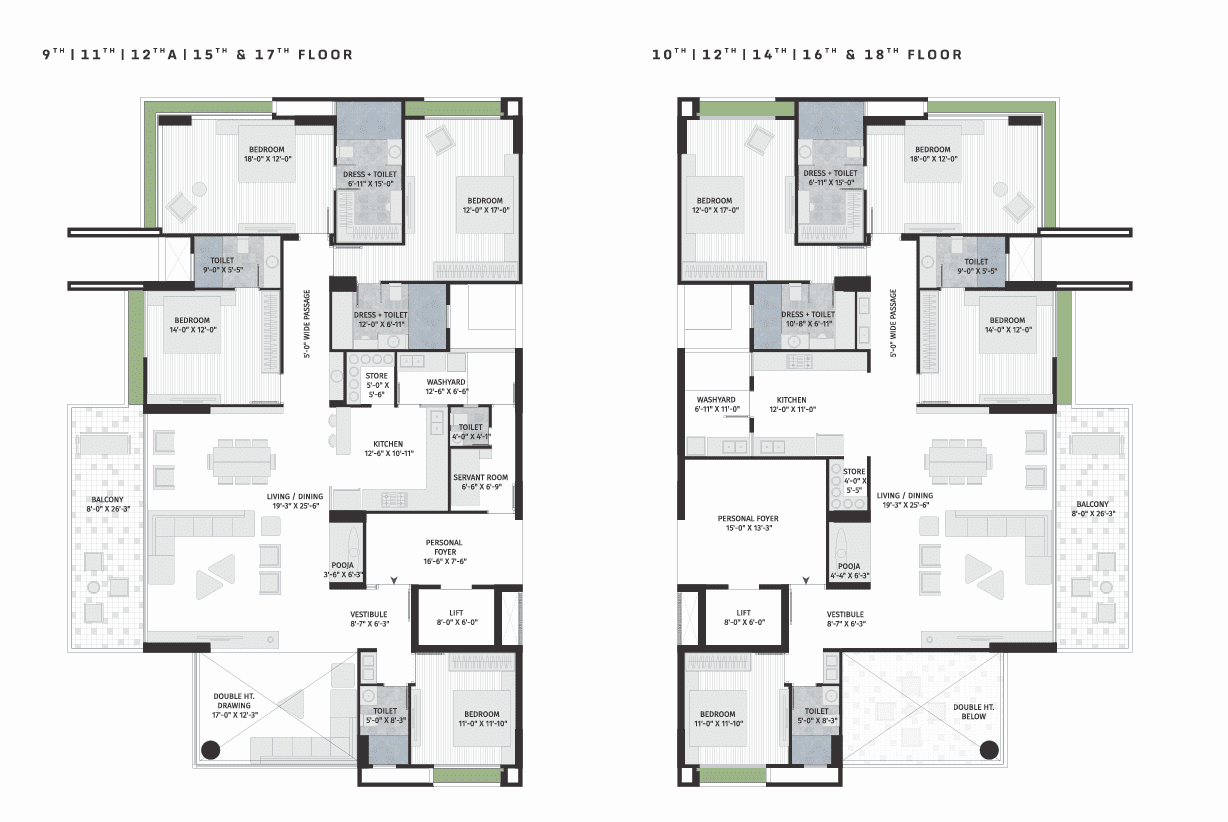 Configurations : 3, 4 BHK Penthouse,Apartments