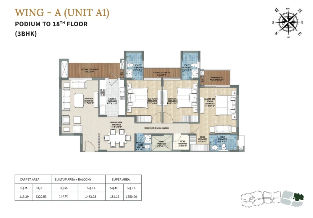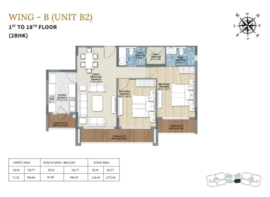 (Super Builtup Area) : 767 – 1221 sq.ft
