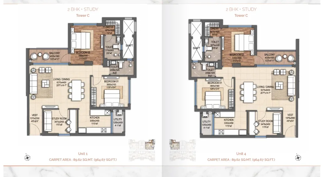 (Super Builtup Area) : 965 – 1379 sq.ft