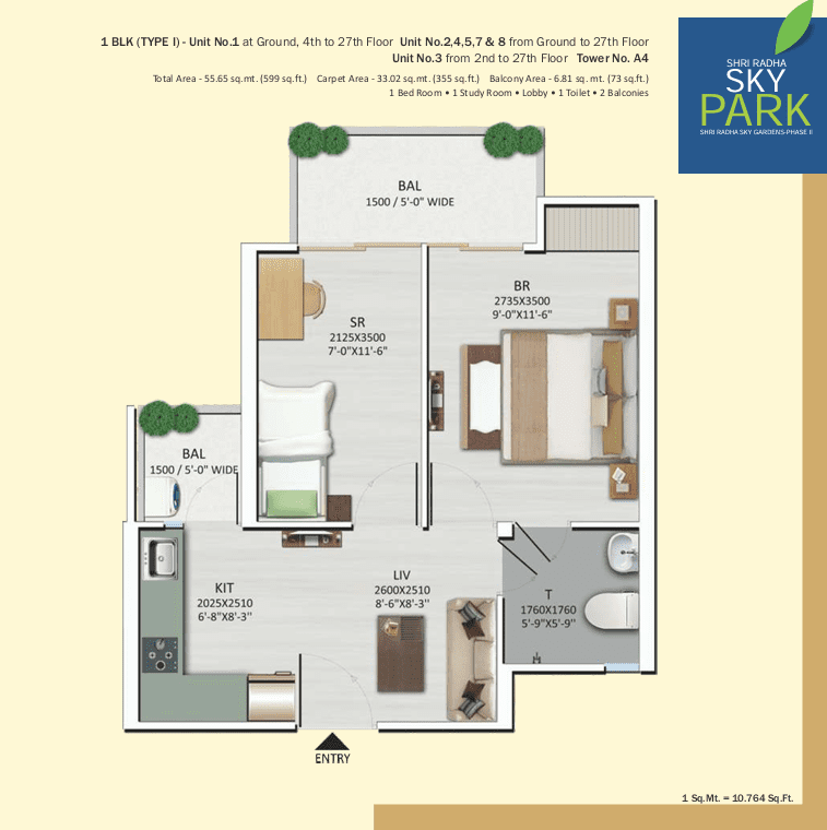 Project : Shri Radha Sky Park – 1, 2 and 3 BHK Apartments in Noida