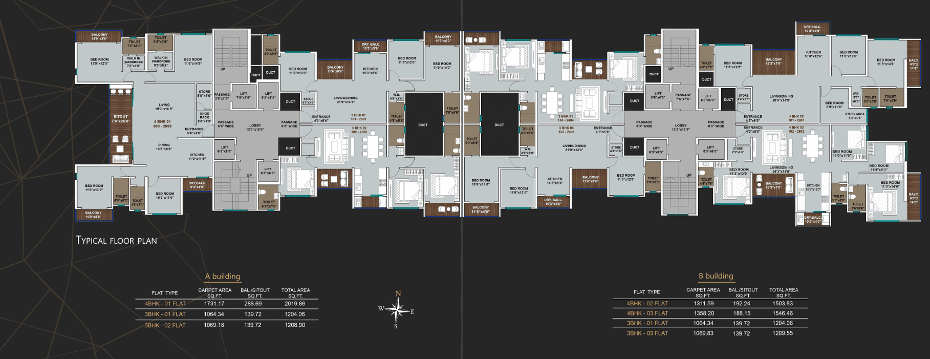 Sizes : 1064 – 1731 sq.ft.