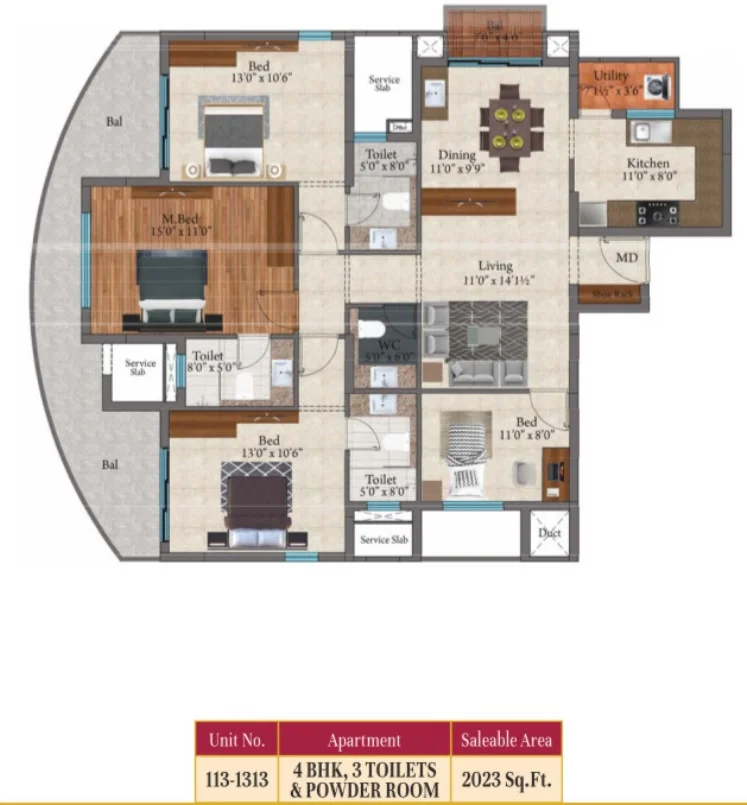 Configurations : 3,4 BHK Apartment