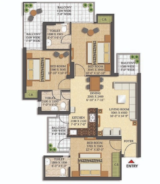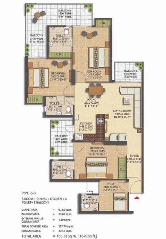 Super Builtup Area : 1165 – 1670 sq.ft