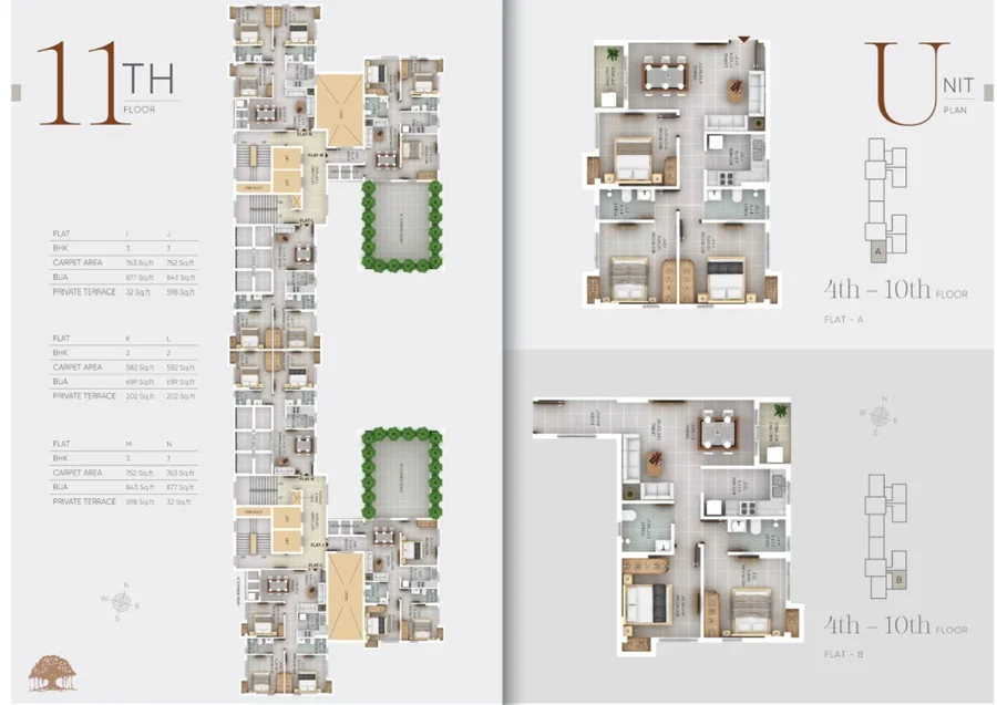(Super Builtup Area) : 964 – 1169 sq.ft