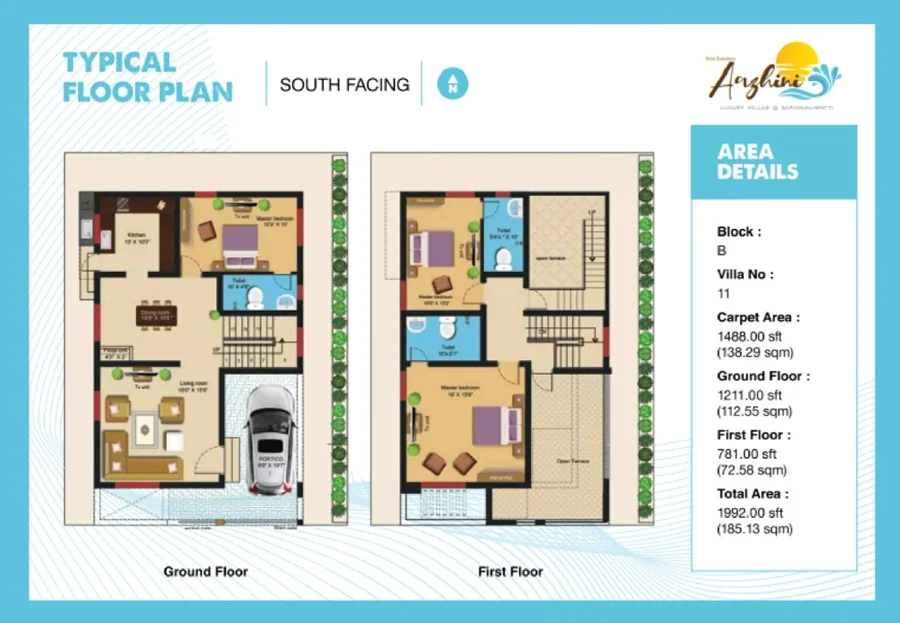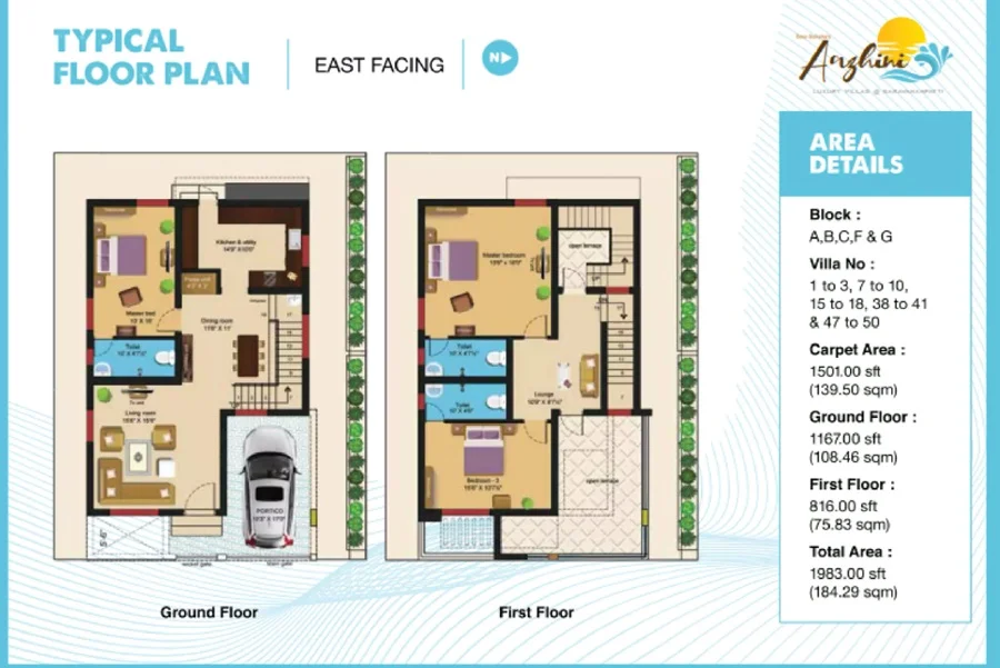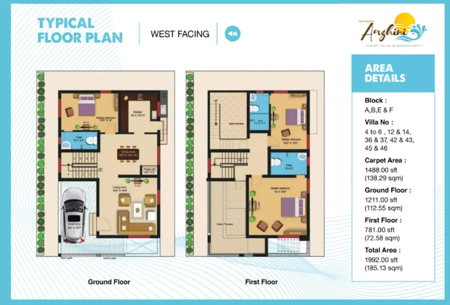 (Super Builtup Area) : 1983 – 1992 sq.ft