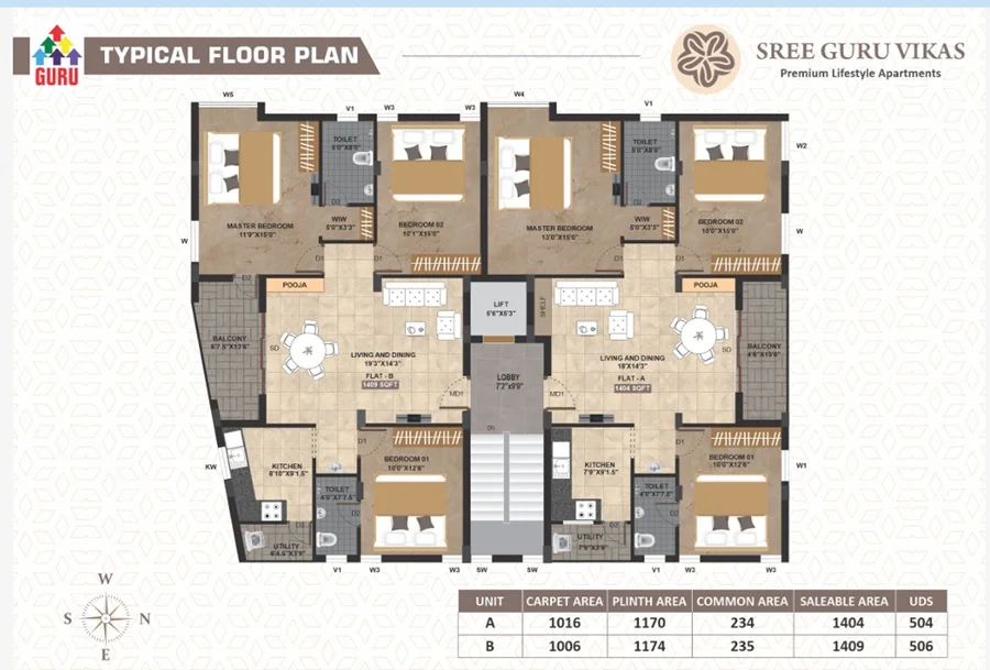 The floor plan of Sree Guru Vikas enables the best utilization of the space with spacious balconies, standard kitchen size and high-quality fixtures. Location advantage of Sree Guru Vikas is its proximity to Reputed Schools and Colleges. Unmatched connectivity from all the important landmarks and places. Easy access to everyday utility such as hospitals, schools, supermarts, parks, regional centers etc.