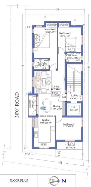 (Super Builtup Area) : 1359 – 1359 sq.ft