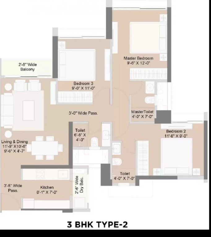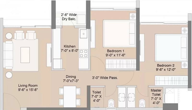 Super Builtup Area : 604 – 785 sq.ft