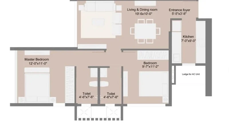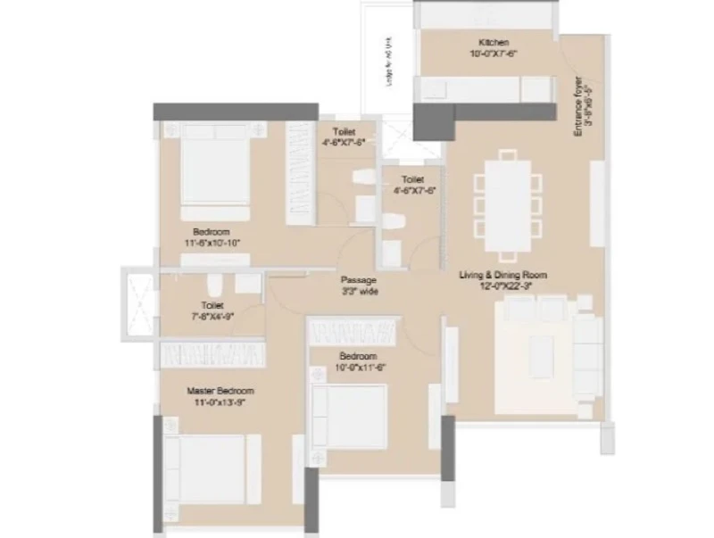 Super Builtup Area : 645 – 902 sq.ft
