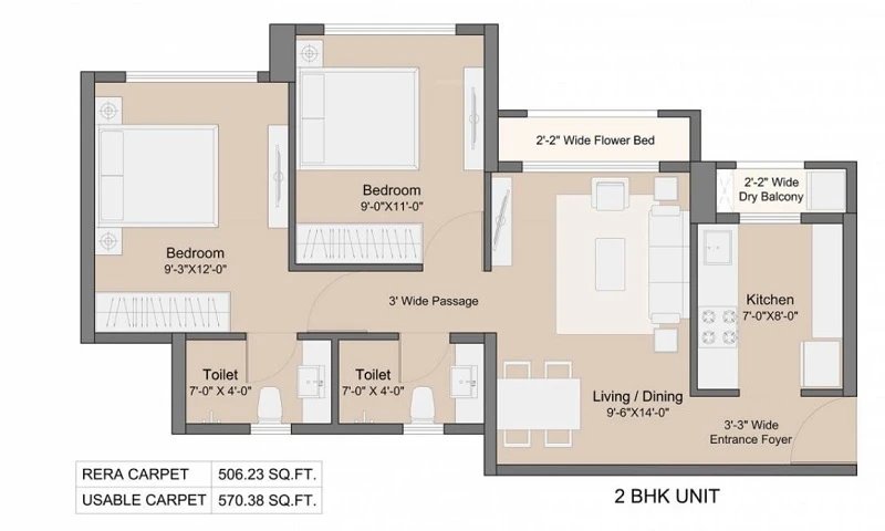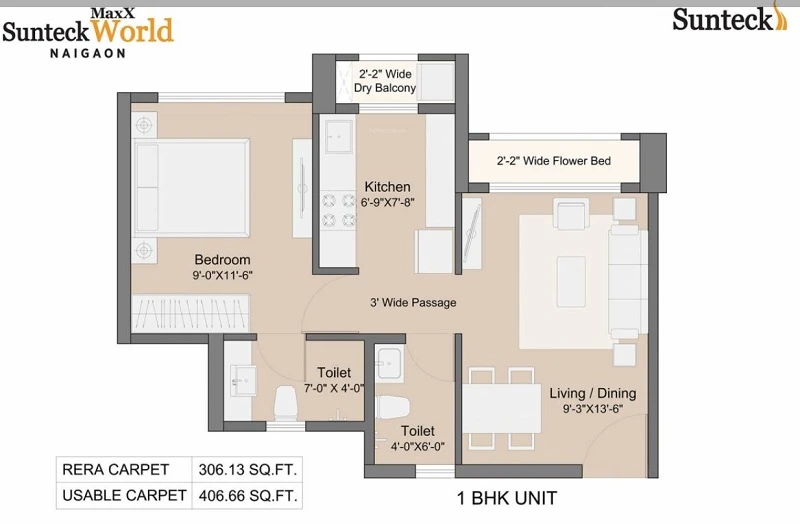 Super Builtup Area : 407 – 570 sq.ft