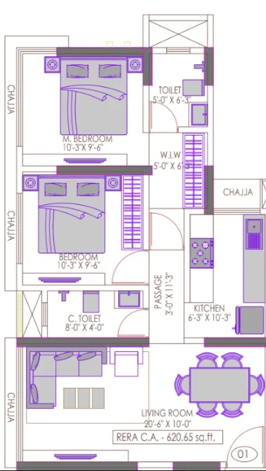 (Super Builtup Area) : 575 – 919 sq.ft