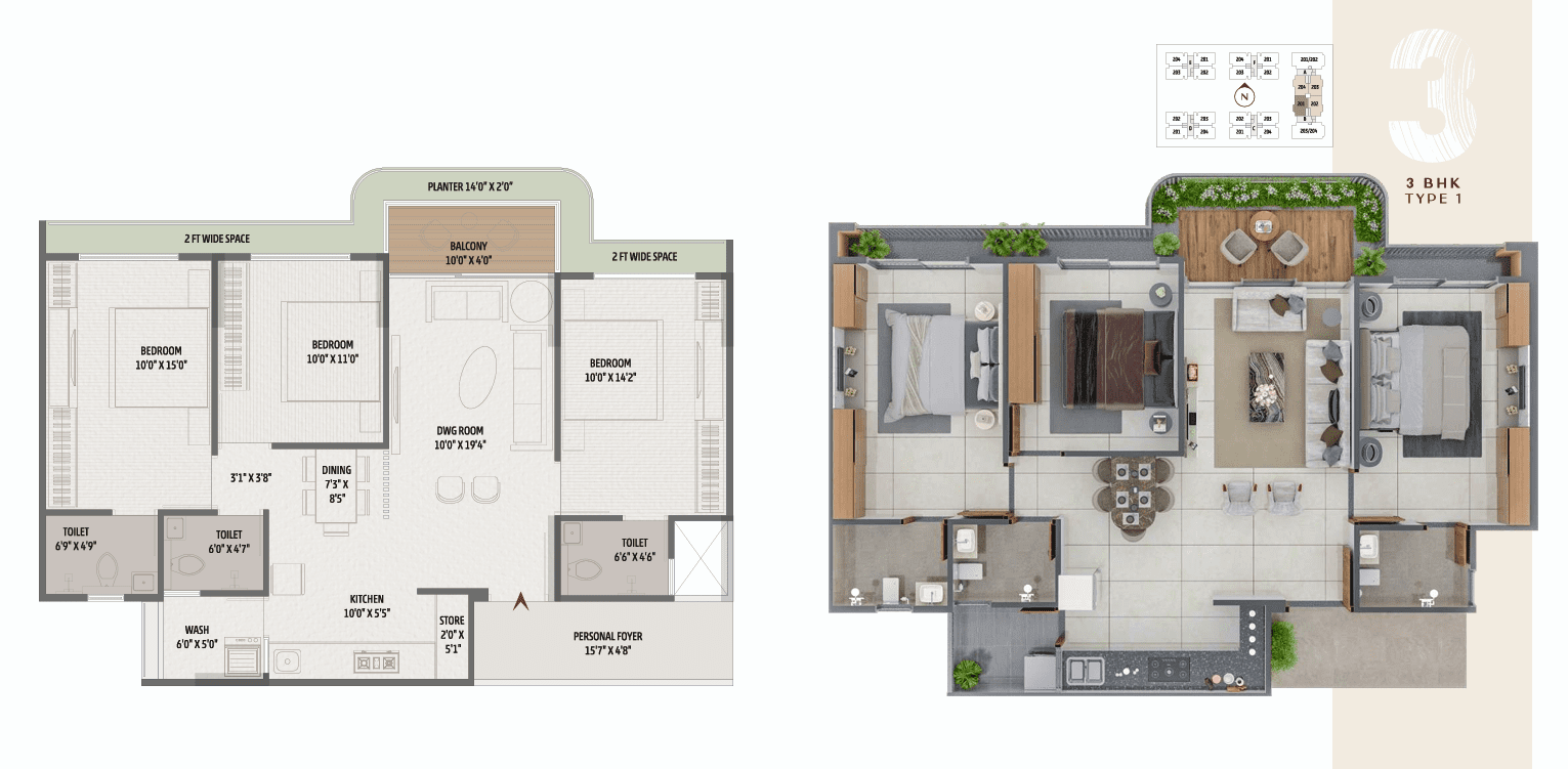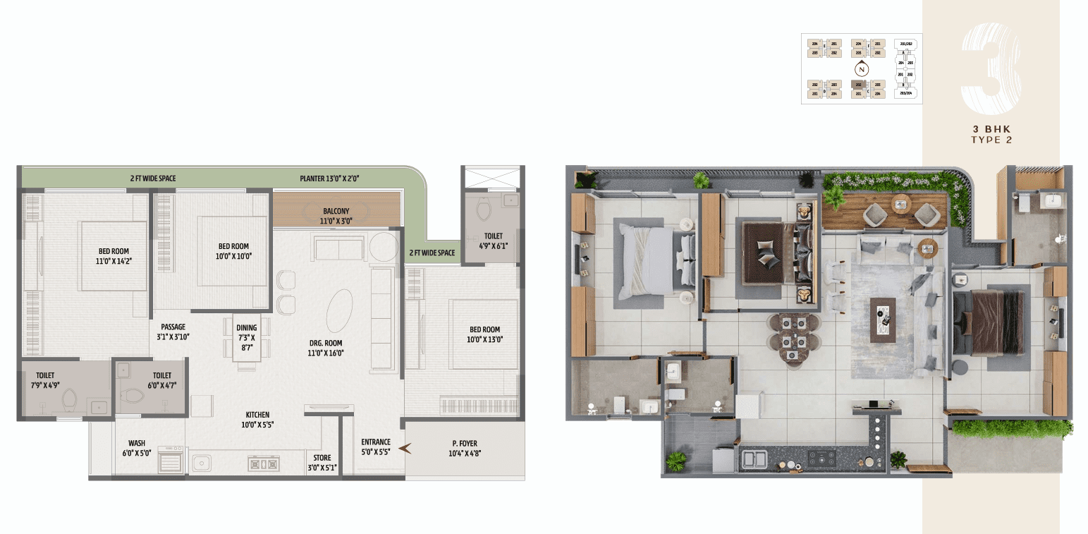 Configurations : 2, 3 BHK Apartments