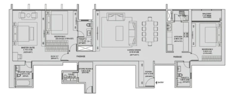Super Builtup Area : 1216 – 1958 sq.ft