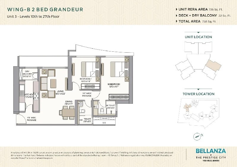 (Super Builtup Area) : 736 – 972 sq.ft