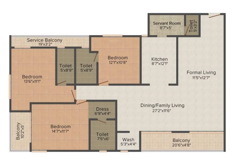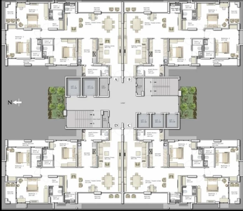 (Super Builtup Area) : 2266 – 2580 sq.ft