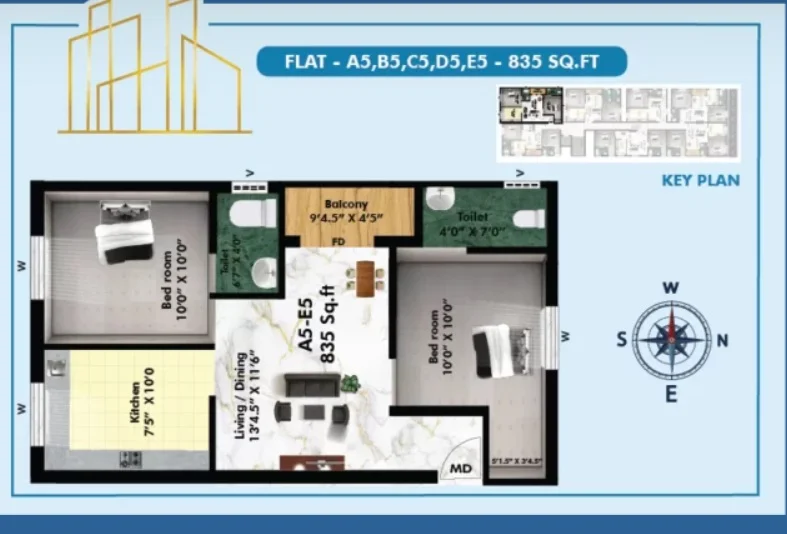 Traventure Elanza Residential project in Chennai offering Apartments for Sale in Maduravoyal. The property offers 1&2BHK Apartments meticulously planned that guarantee a hassle-free lifestyle. As per the area plan it is set in 0.2 Acres and has 35 units in the size range 540 – 835 sq.ft. Possession date is March 2027. Traventure Elanza offers prices suitable for both luxurious and affordable Apartments in Chennai. Traventure Elanza is located Maduravoyal. This is considered as best Apartments for Sale in Chennai and best Apartments for Sale in Maduravoyal.