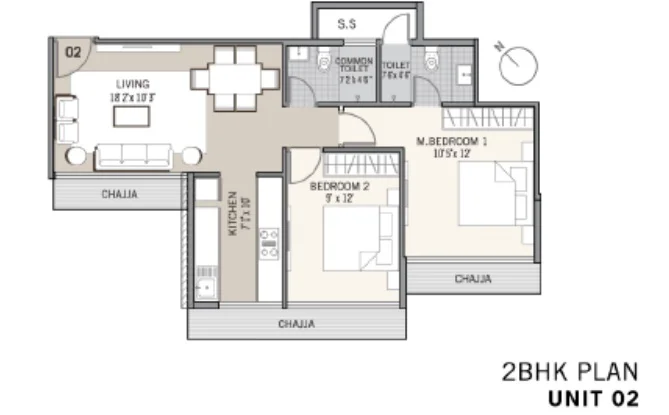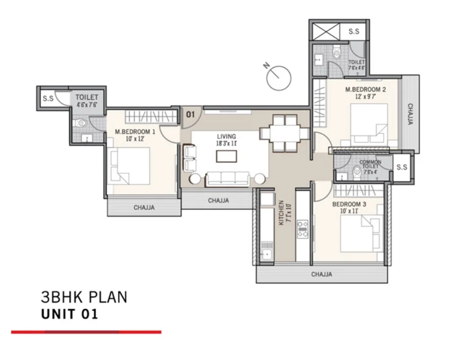 (Super Builtup Area) : 1163 – 1494 sq.ft