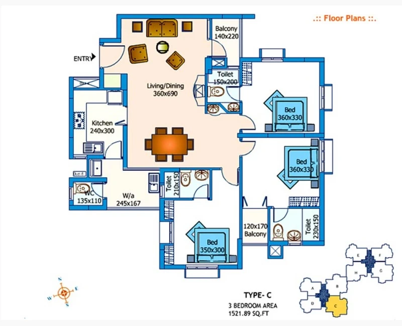 (Super Builtup Area) : 1123 – 1521 sq.ft