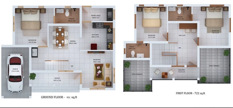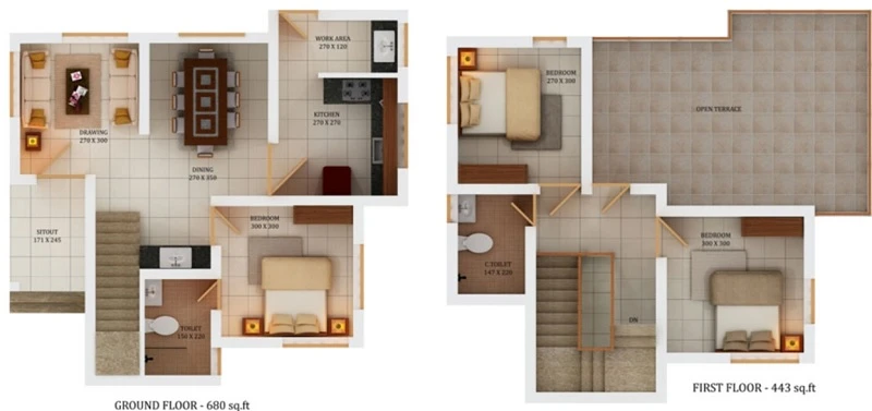 (Super Builtup Area) : 1123 – 1673 sq.ft
